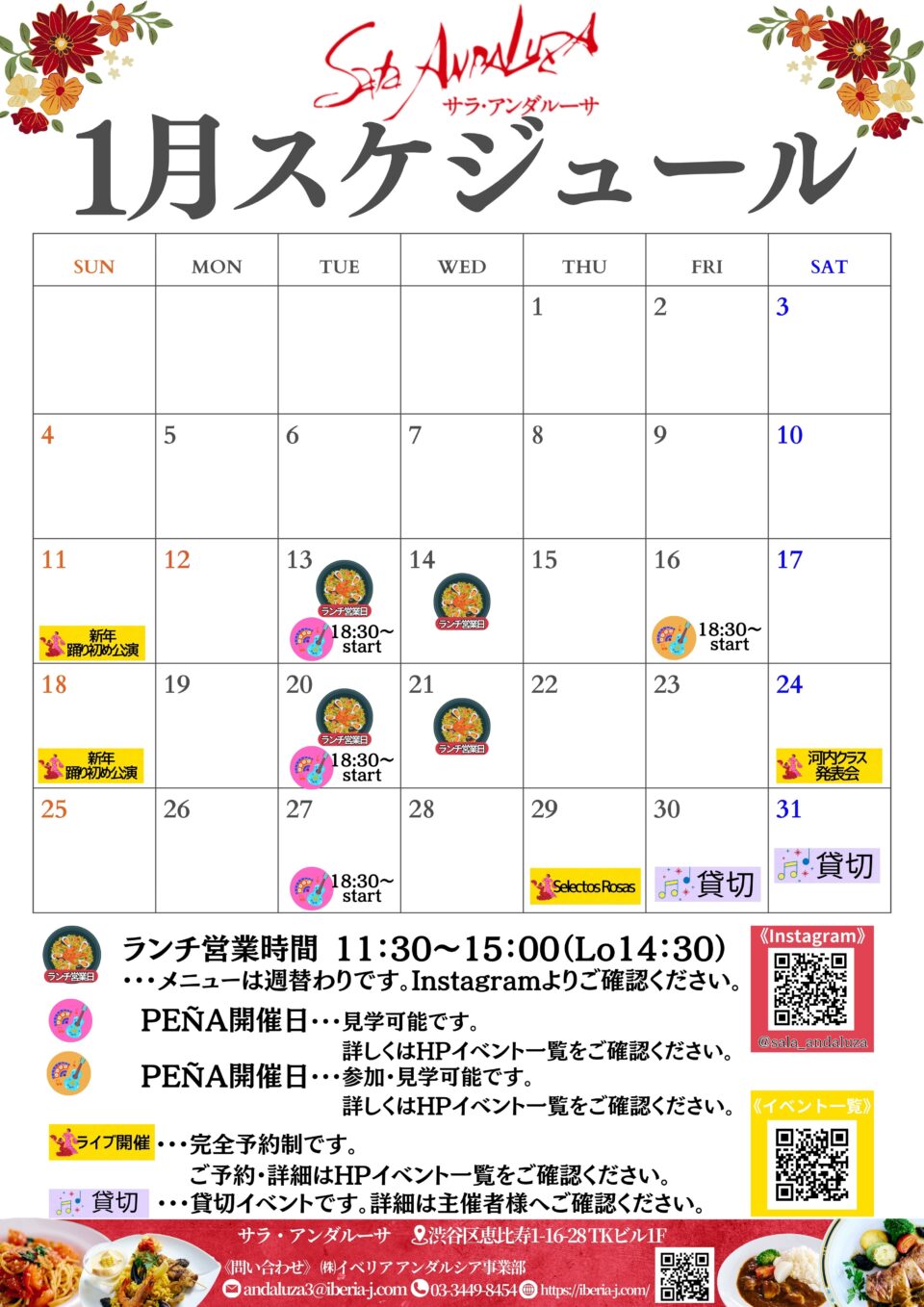 【1月】サラアンダルーサ スケジュールのお知らせ